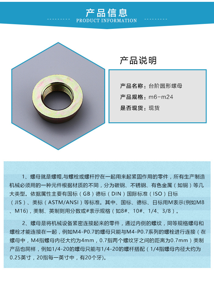 臺階圓形螺母廠家阿國標準件告訴您正確安裝臺階圓形螺母的指南,讓您在安裝時輕松應用