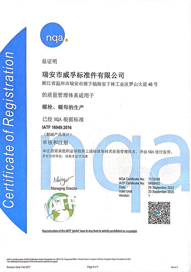 瑞安市威孚標(biāo)準(zhǔn)件有限公司中文站中文   |   瑞安市威孚標(biāo)準(zhǔn)件有限公司英文站English