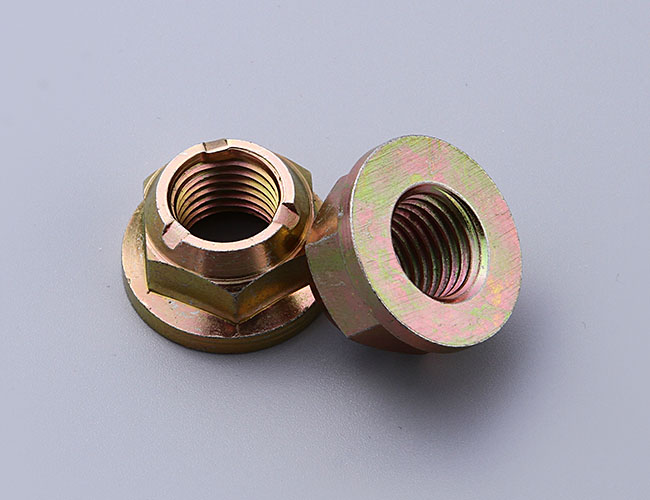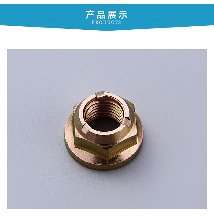 當有振動發(fā)生時防松螺母凸起部分相互錯動,產生抬升張力,從而達到不錯的防松效果。法蘭面壓三點緊鎖螺母有鐵的,也有不銹鋼的。但鐵的比較常用。而且還可以根據(jù)客戶所需要的色彩進行電鍍處理。一般電鍍處理有環(huán)保和非環(huán)保的。電鍍有環(huán)保彩鋅,環(huán)保鎳,環(huán)保蘭鋅,環(huán)保黑鋅等,也有普通的電鍍,白鋅,彩鋅,黑鋅,白鎳等。