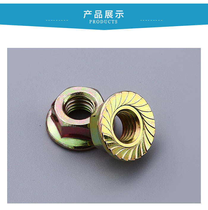 法蘭螺母也稱帶墊螺母,花齒螺母,六角法蘭面尼龍墊圈鎖緊螺母,法蘭螺帽等。大多用在管道連接或者需要增加螺母接觸面的工件上。一般常見的法蘭螺母規(guī)格大致都在M20以下,因為大部分法蘭螺母都是用在管道及法蘭盤上,所以受工件約束,法蘭螺母規(guī)格同螺母相比比較少一些。M20以上的一些法蘭螺母大多為平面法蘭,就是法蘭面上沒有齒紋,這些螺母大部分用在一些特殊設(shè)備和特殊地方。